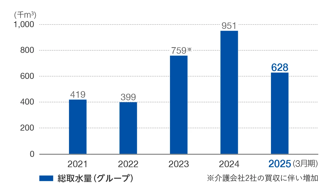水使用量(総取水量)の推移(千m3・グループ全体)