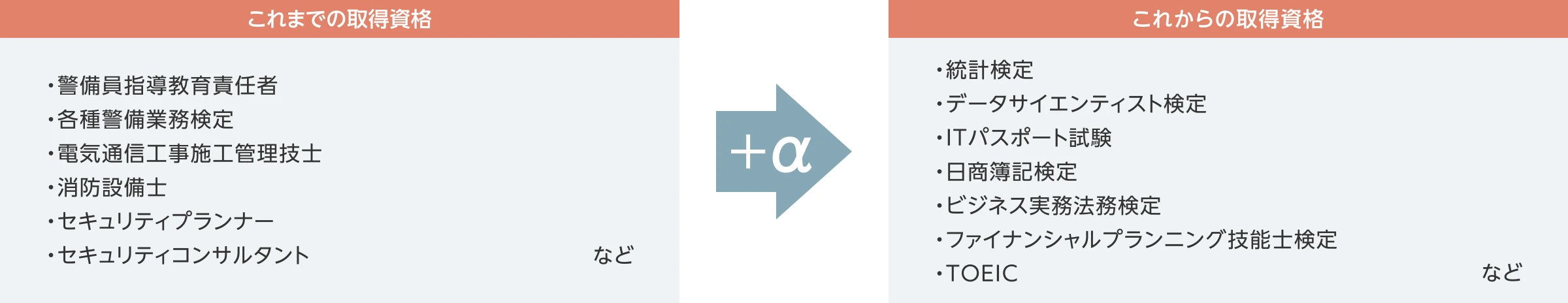 また入社後も、中央省庁や他企業、グループ会社間での人事交流の促進、在外公館における警備対策分野の要員公募への対応や経営人財育成のための専門職大学院への社員派遣等の取り組みを通じて、自律的なキャリア形成を支援しています。