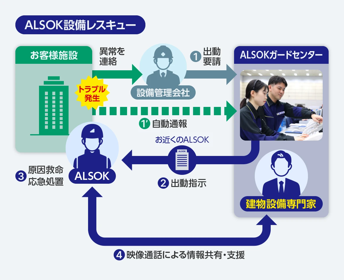 IT機器と建物設備それぞれの異常や障害にガードマンが現地で原因究明と応急処置を行う「ALSOK ITレスキュー」および「ALSOK設備レスキュー」のサービス提供エリアをサービス提供エリアを全国に拡大しました。