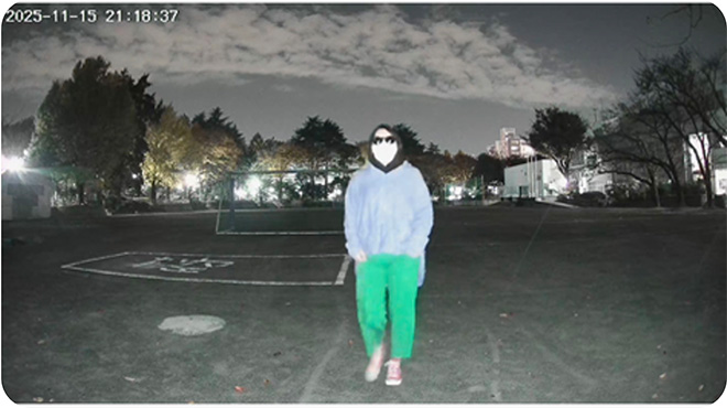 夜間でも人感センサーが 人感センサーが動きをとらえ、夜間も自動で録画。