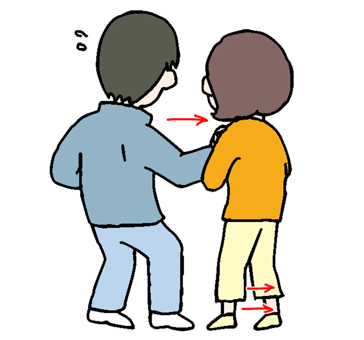 相手の手首にダメージが入り、体勢が崩れるので、その隙に逃げましょう。 -