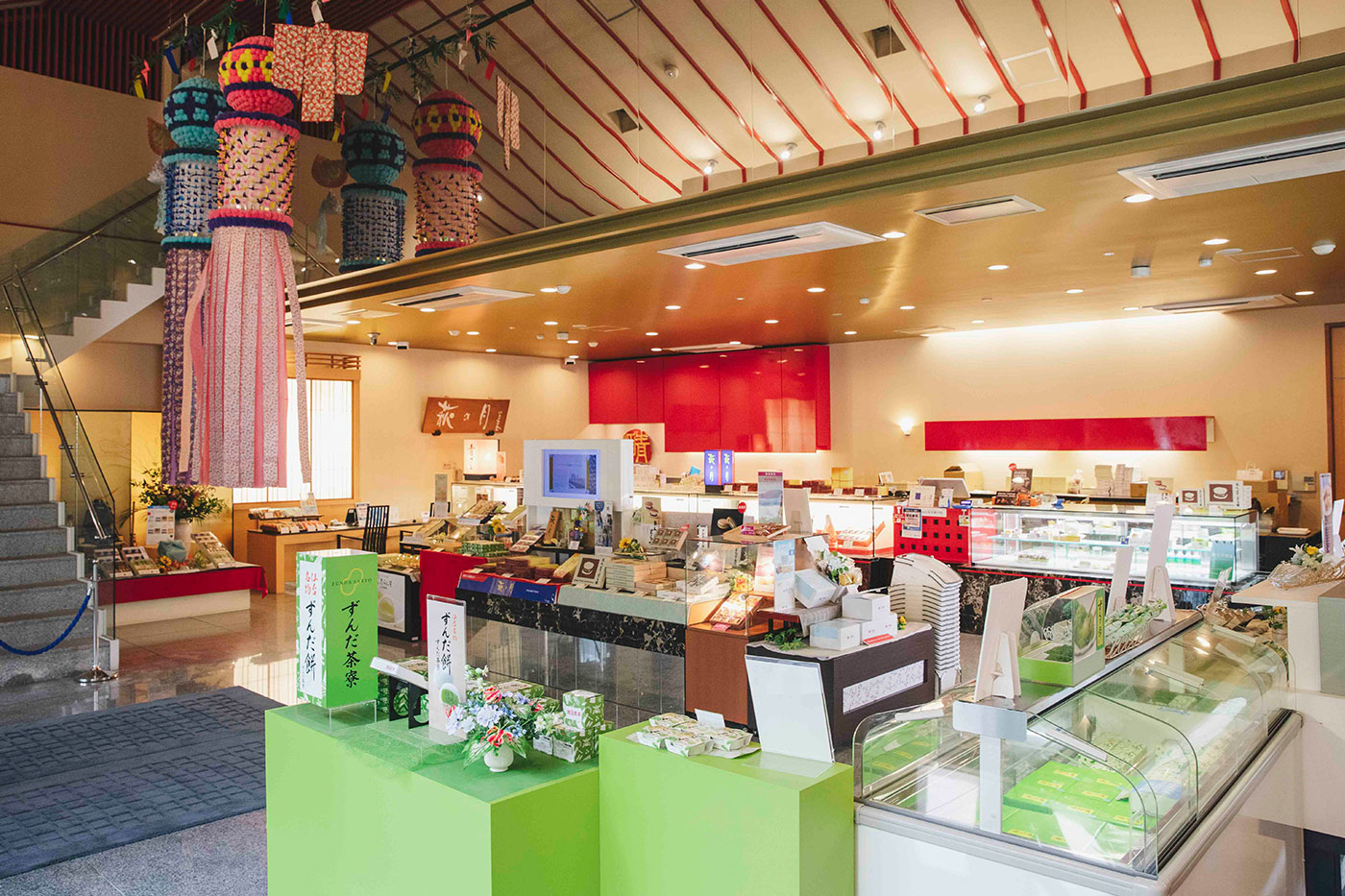 創業以来75年以上にわたって、「お菓子を通じて、暮らしに新鮮な感動をおくり続けたい」という願いを込めて、お菓子作りを続けている。「菓匠三全 広瀬通り大町本店」では、仙台を代表する銘菓「萩の月」をはじめ、ずんだを使った和洋菓子などが並び、店内でもいただける。