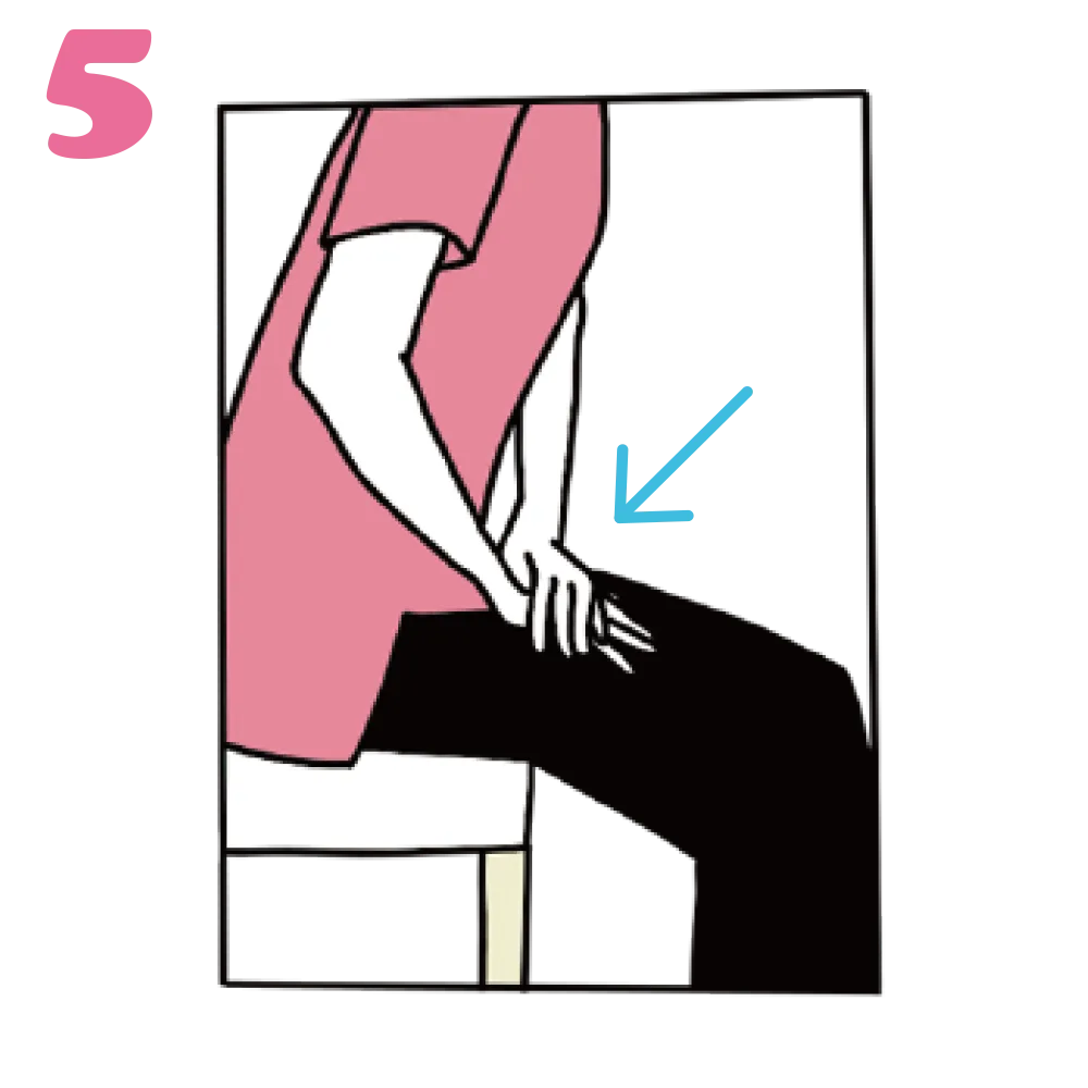 お尻を持ち上げられる方は、もも裏からお尻もさすりましょう。